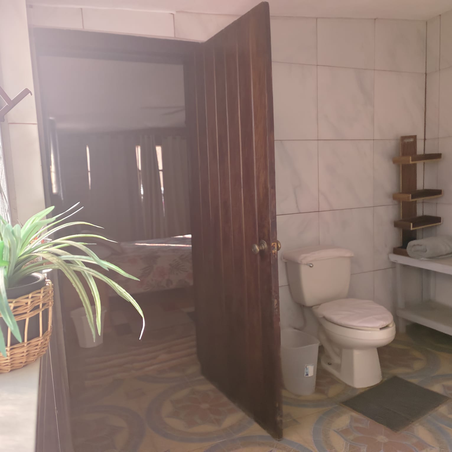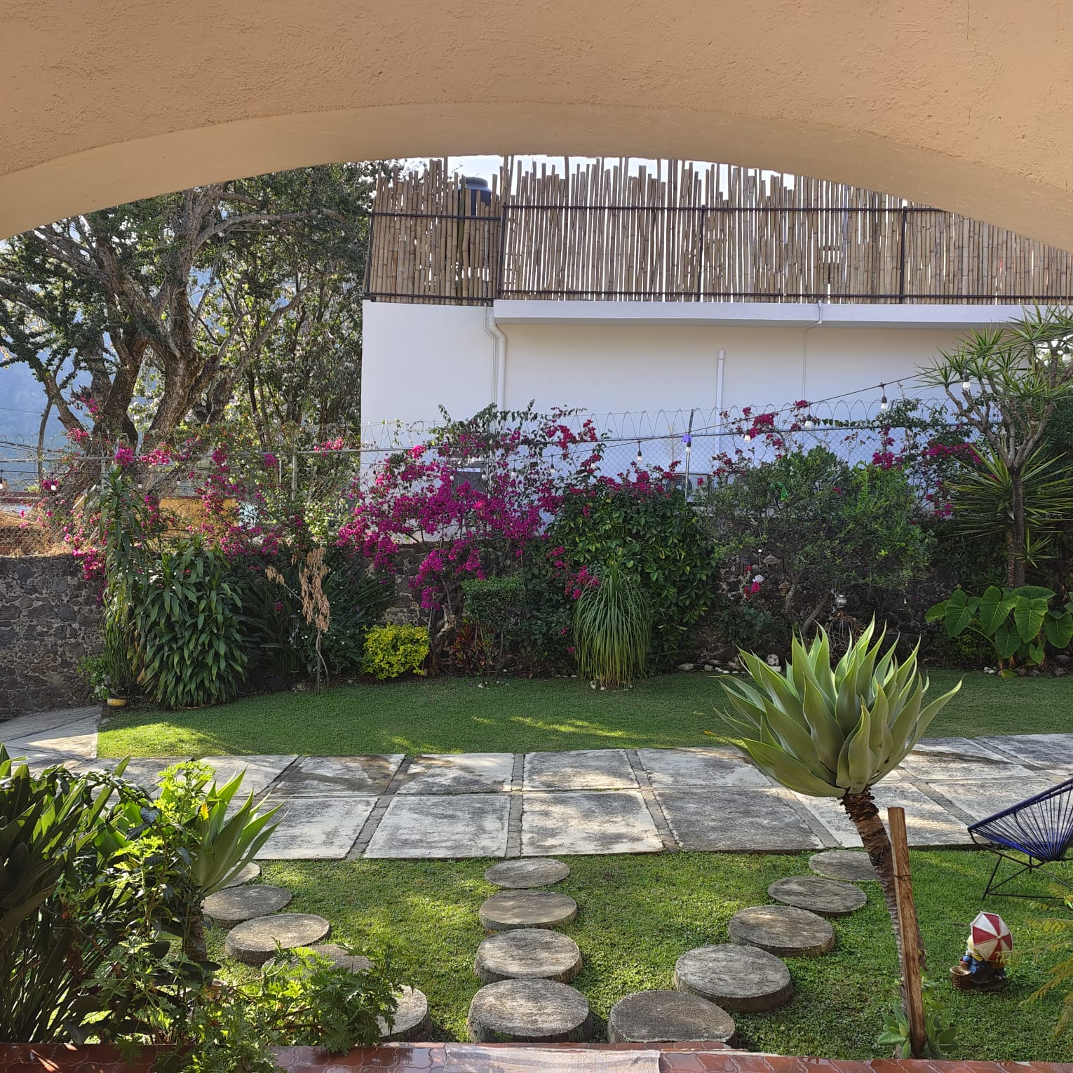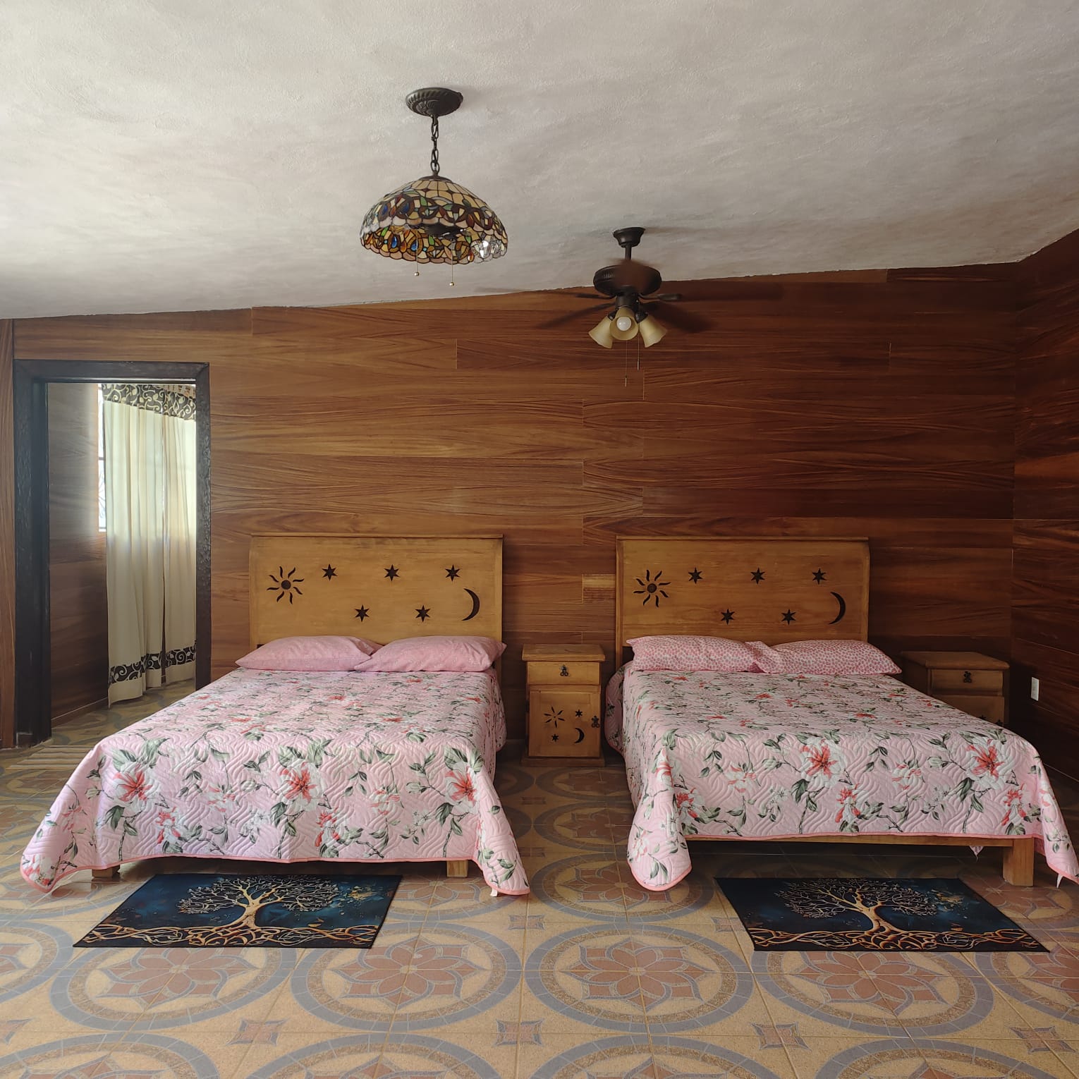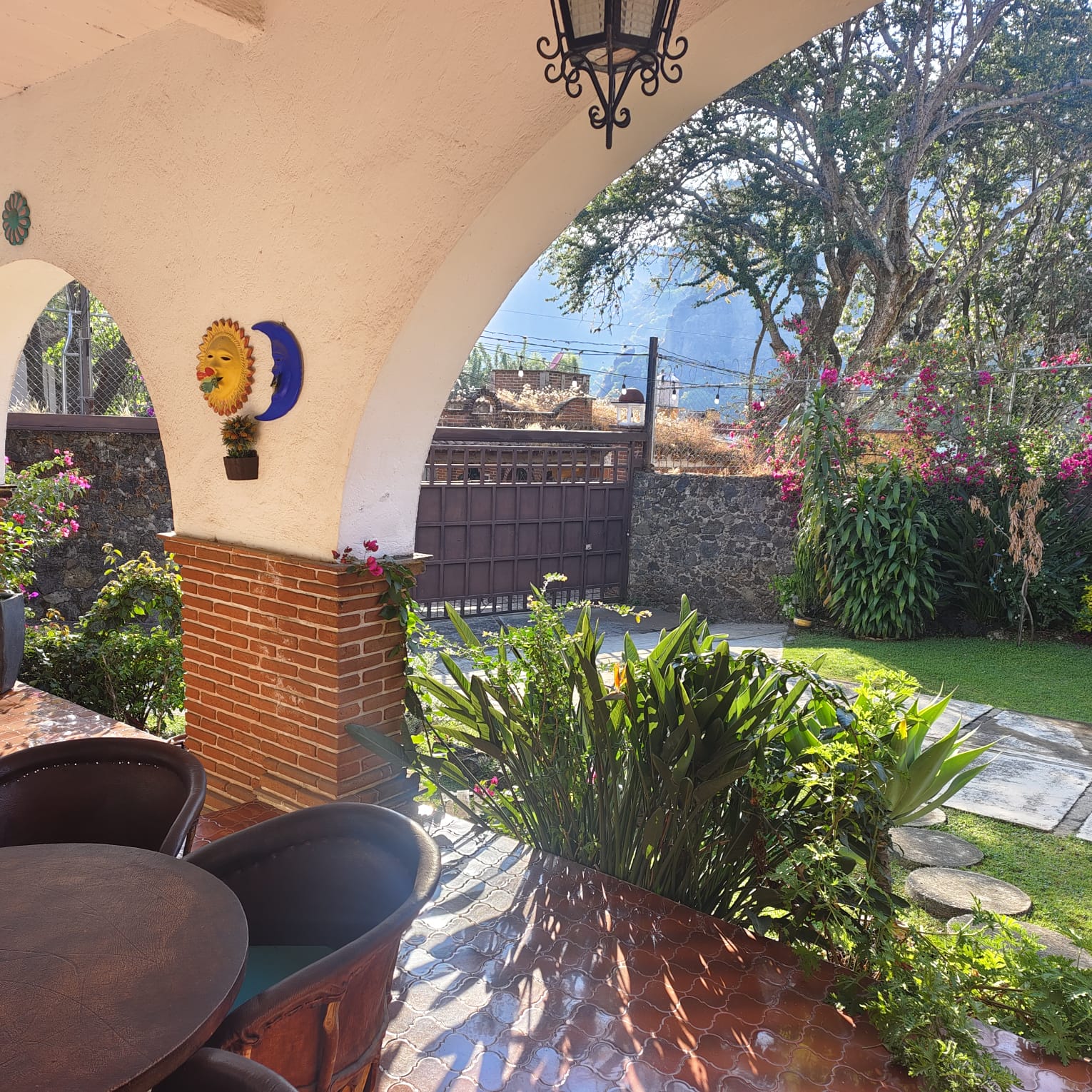 Casa principal con 3 habitaciones y 2 baños, cocina, sala, comedor con chimenea.