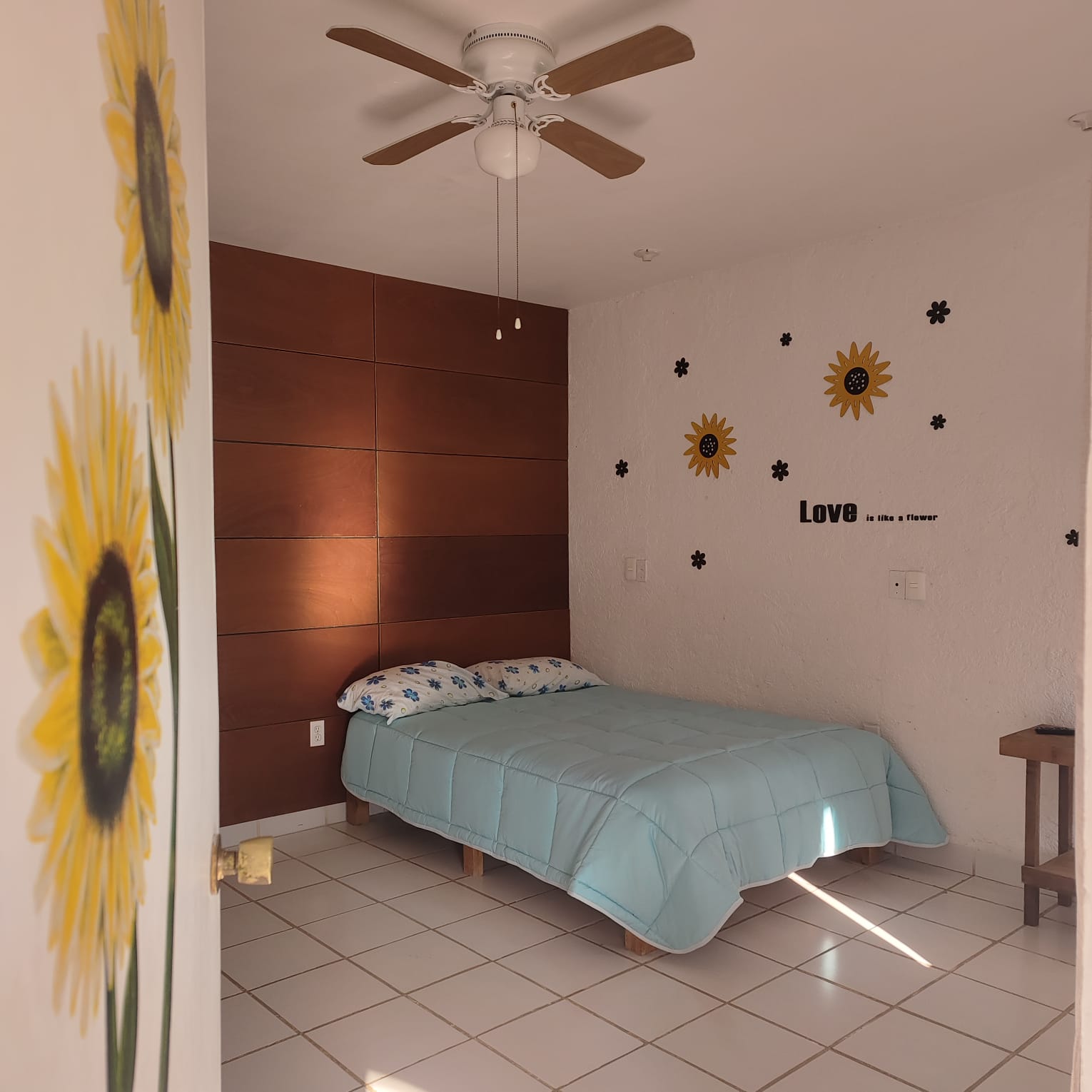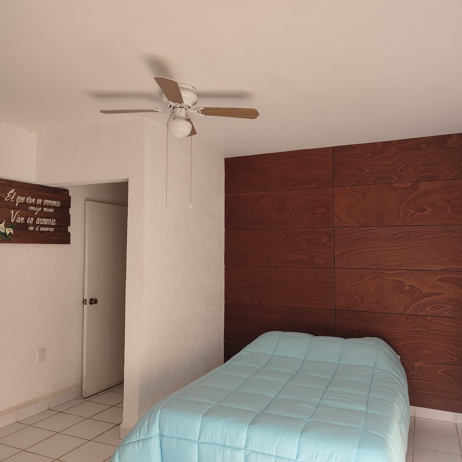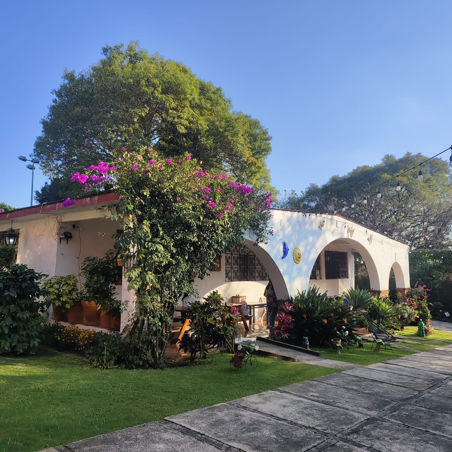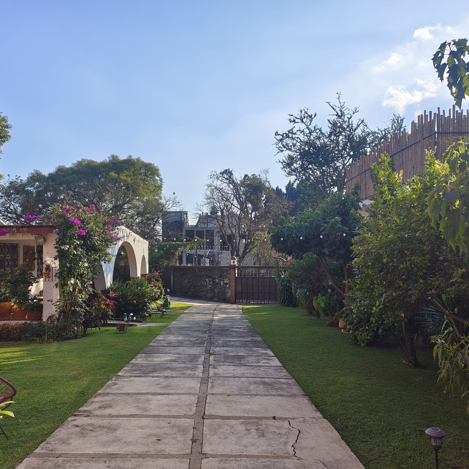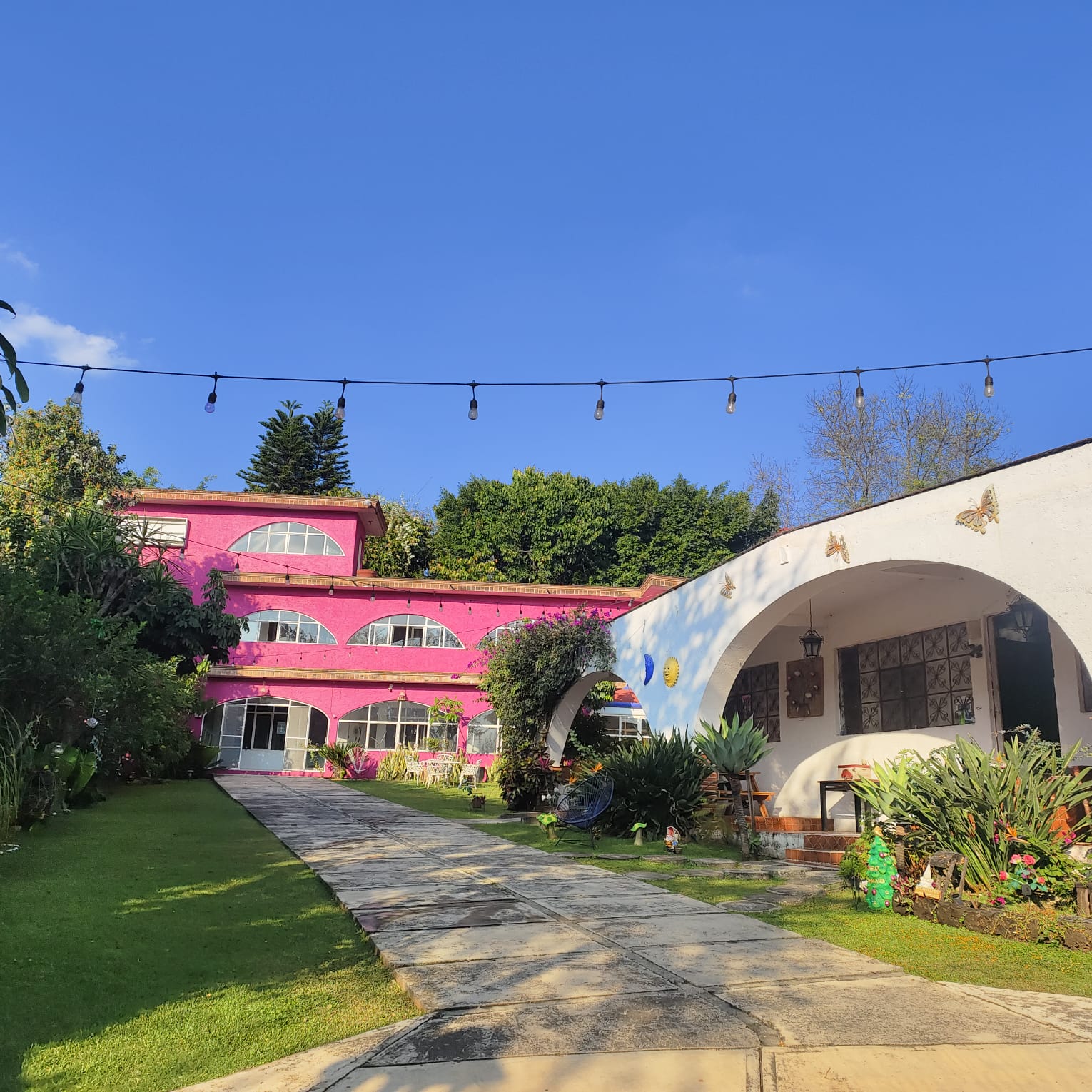Casa principal con 3 habitaciones y 2 baños, cocina, sala, comedor con chimenea.