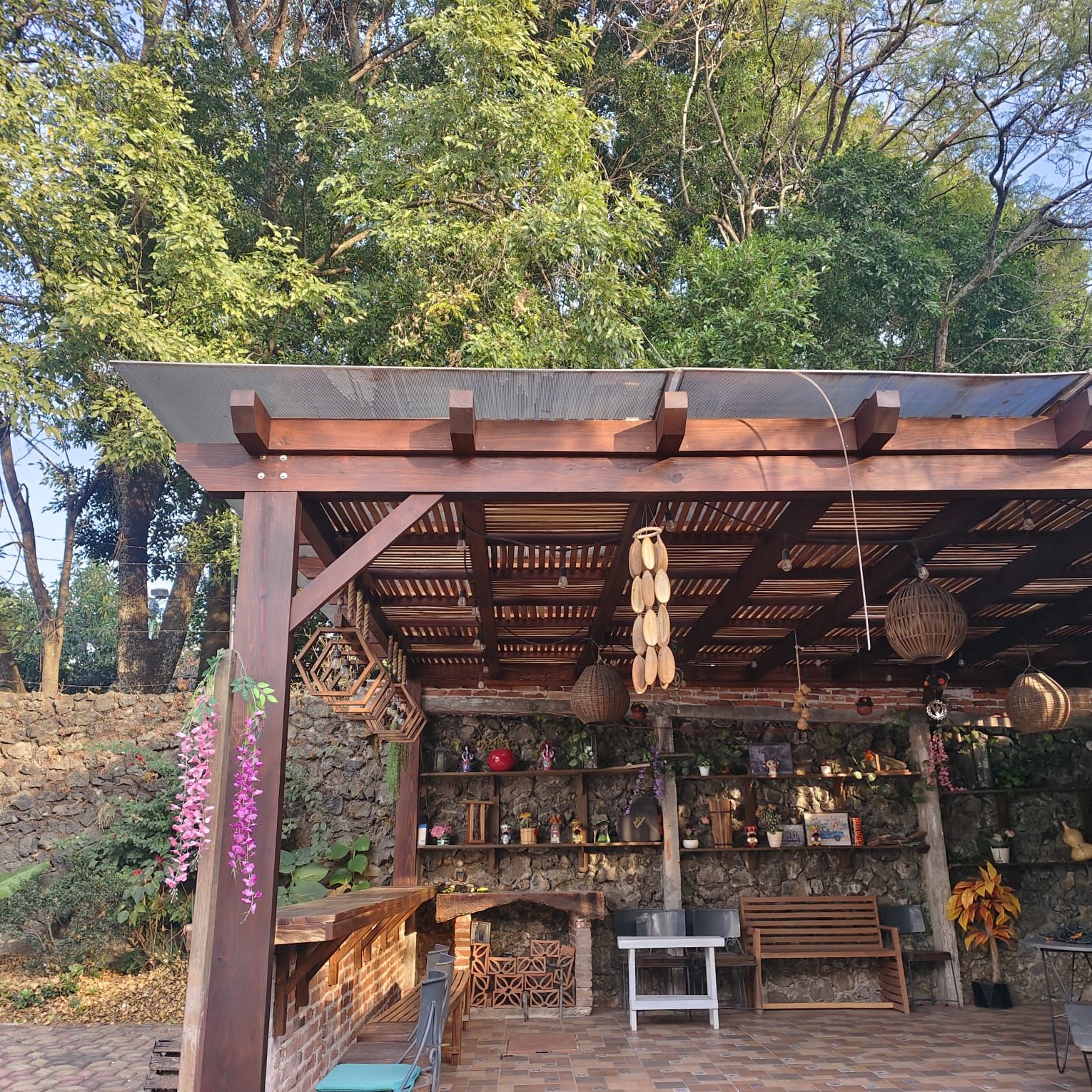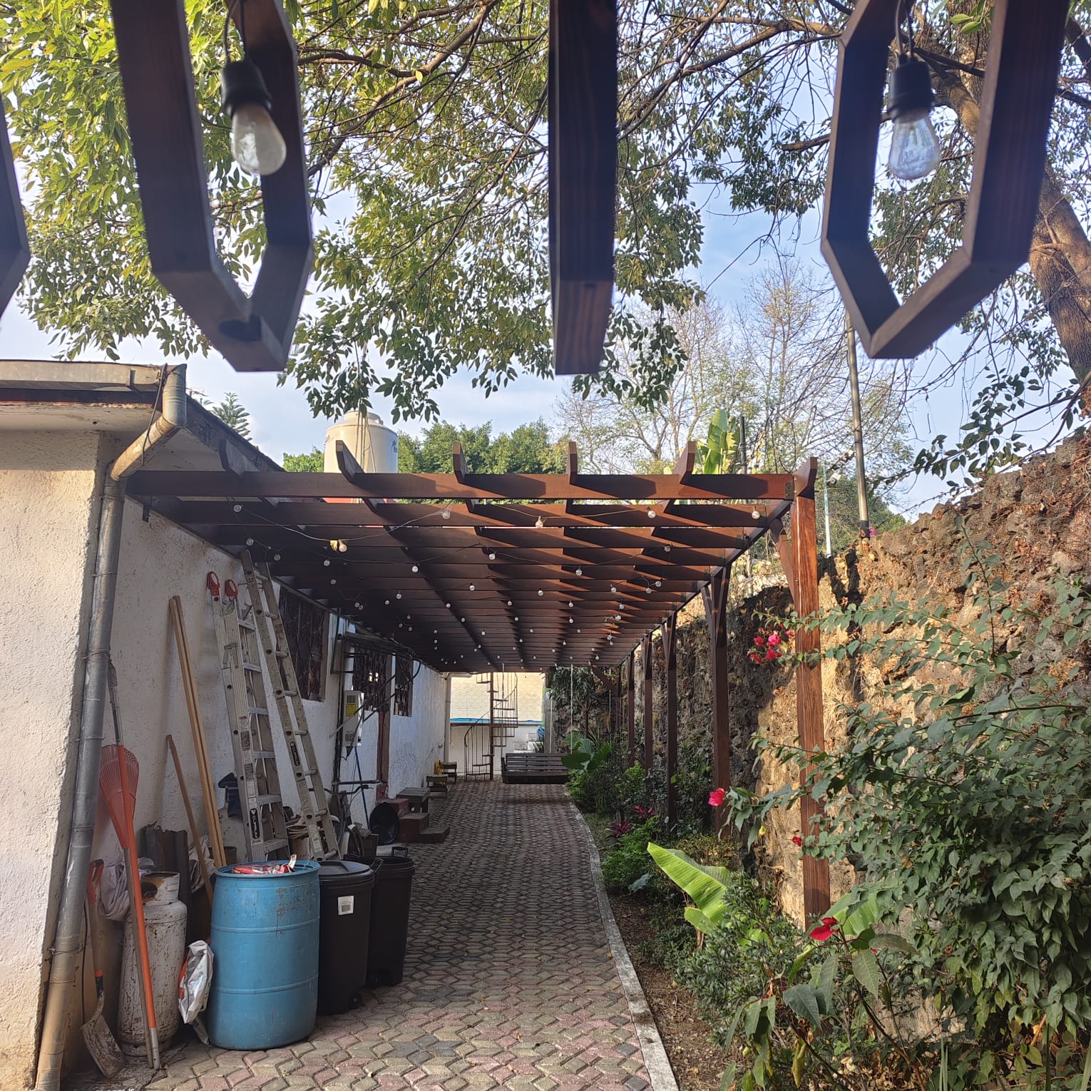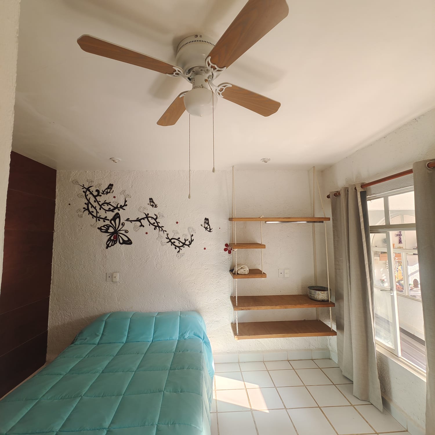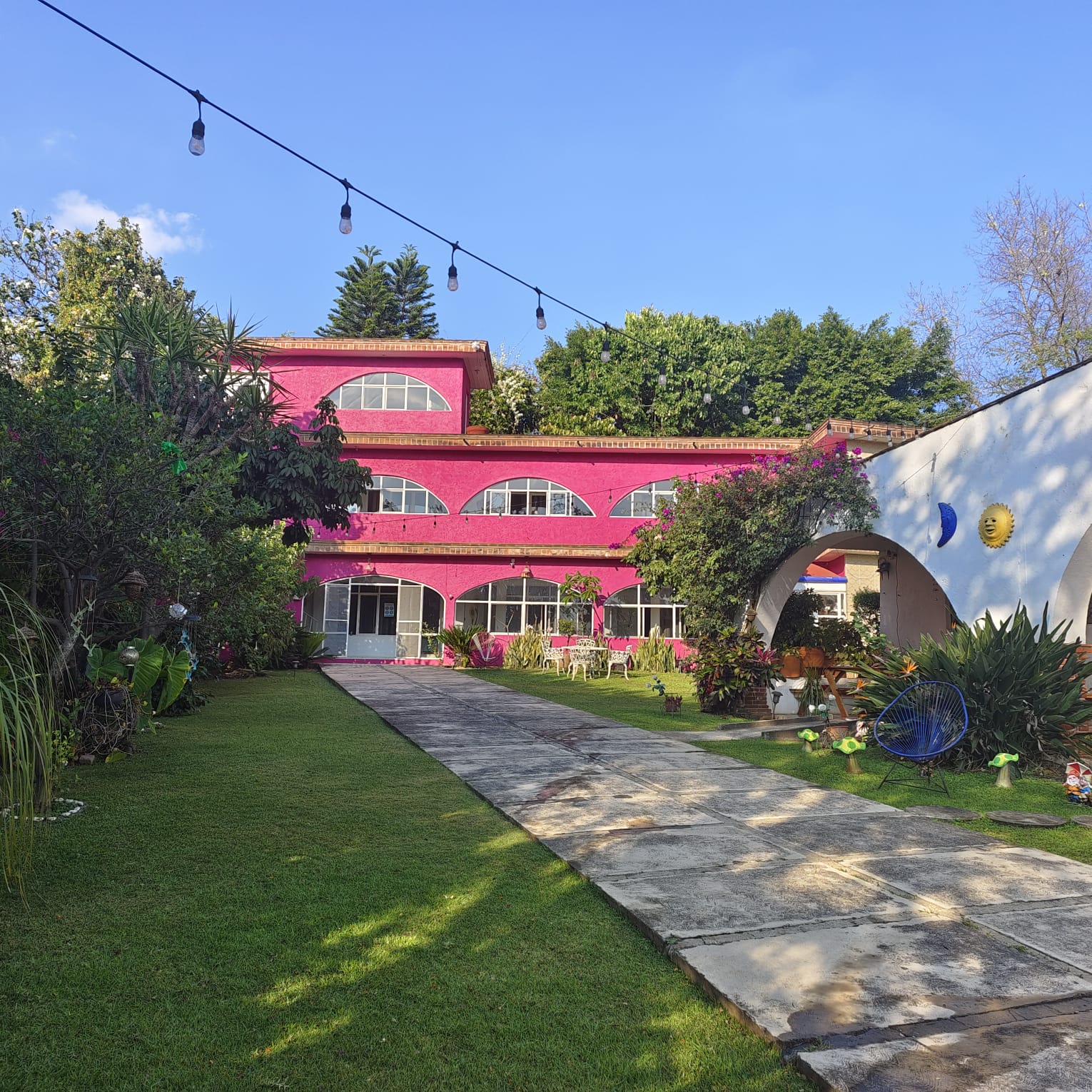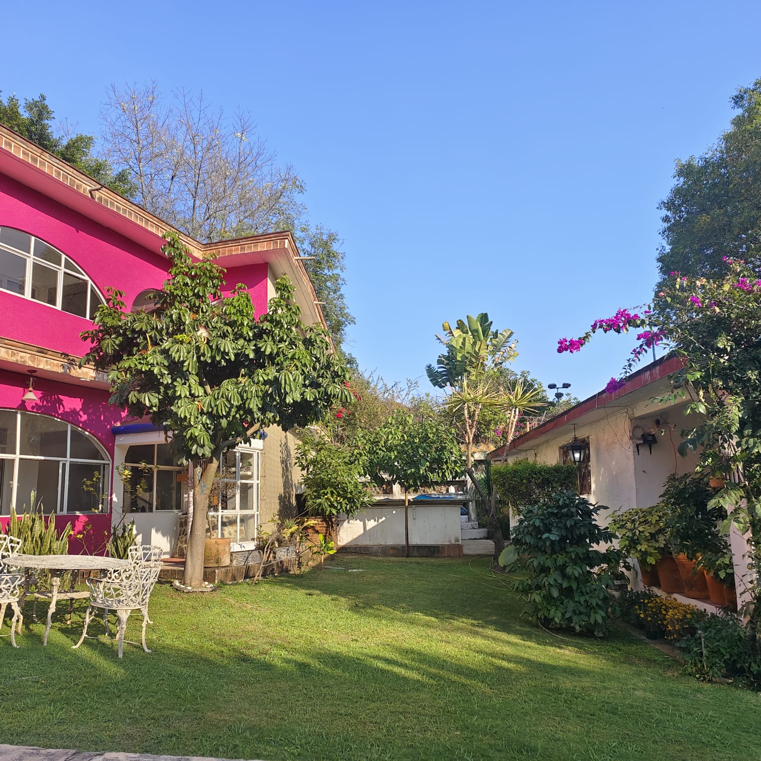 Casa principal con 3 habitaciones y 2 baños, cocina, sala, comedor con chimenea.