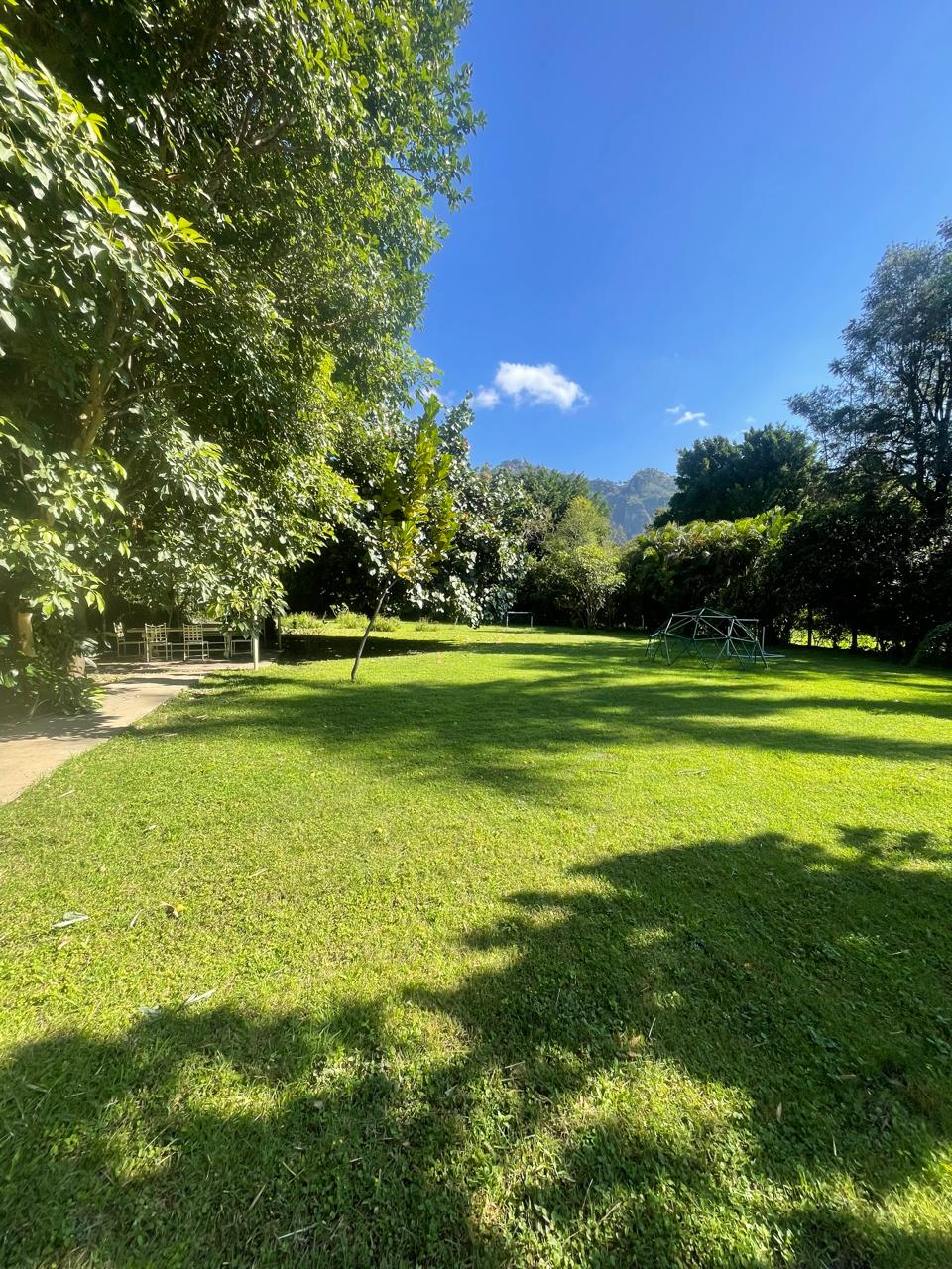 Jardín plano con alberca (sistema solar), jacuzzi, 2 camastros y asador.