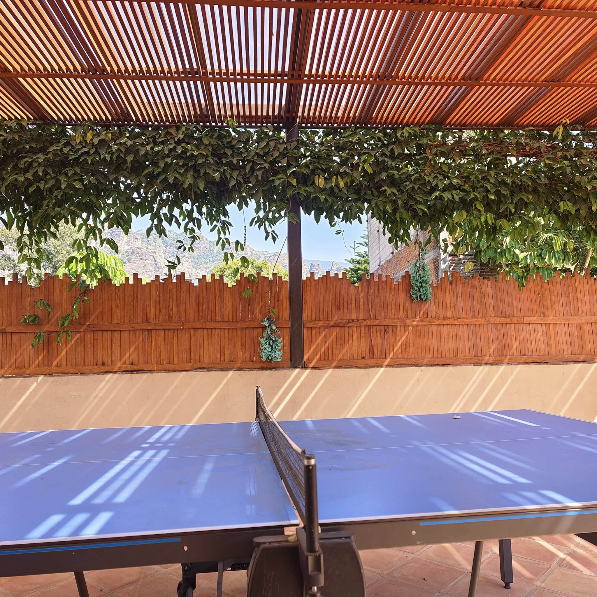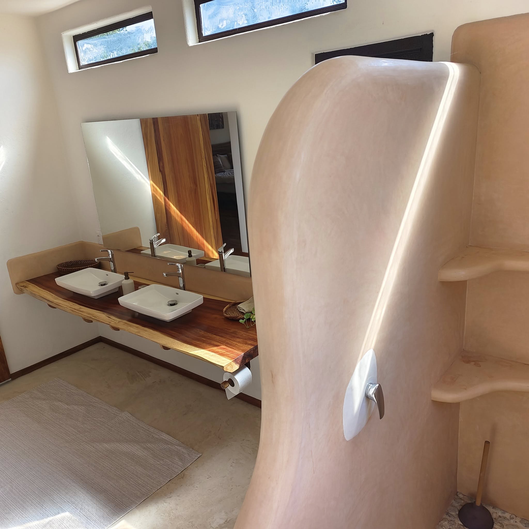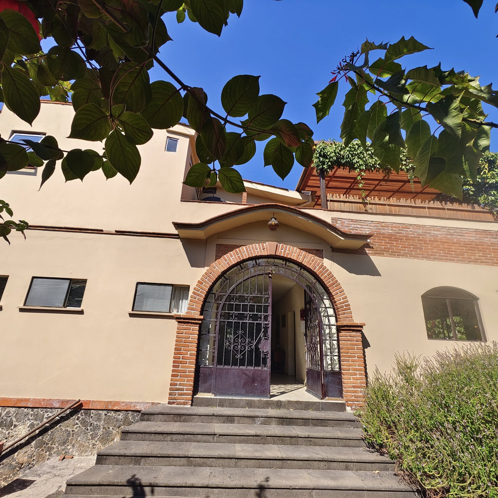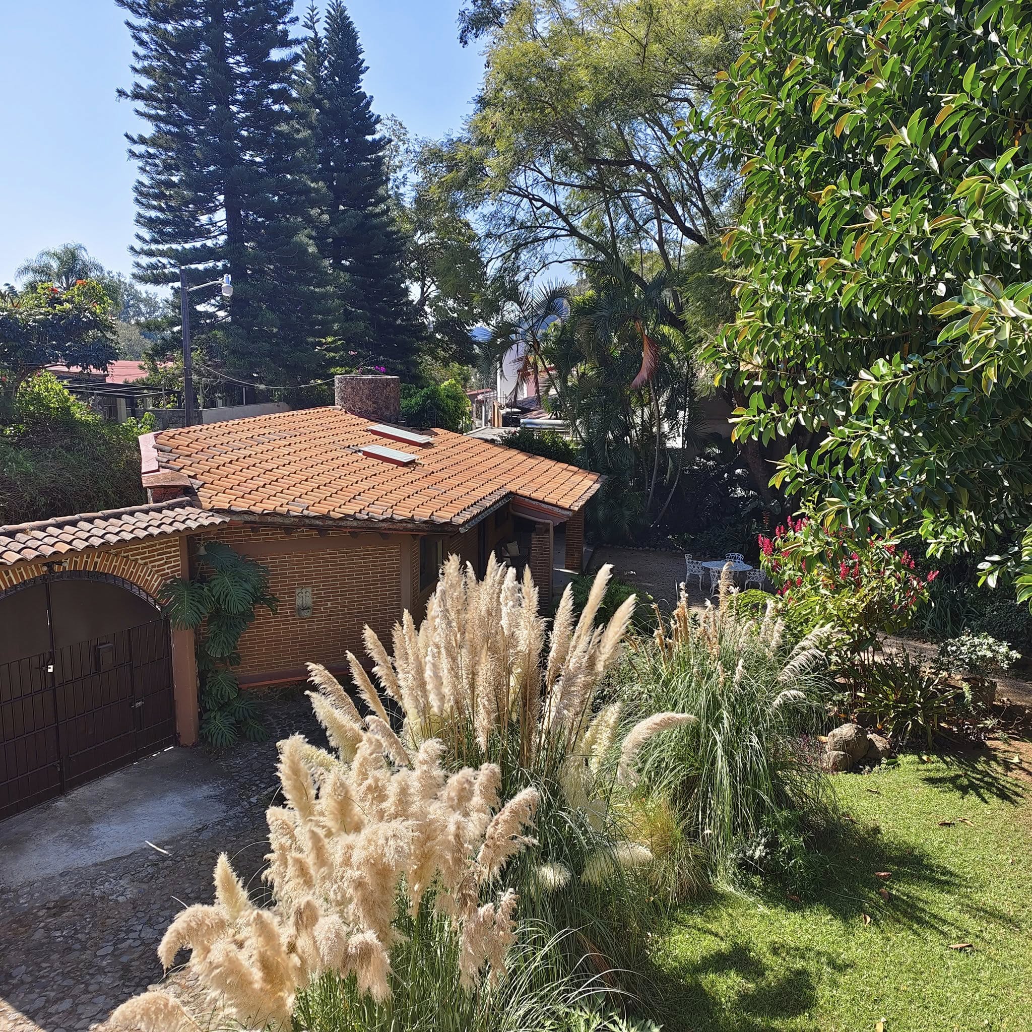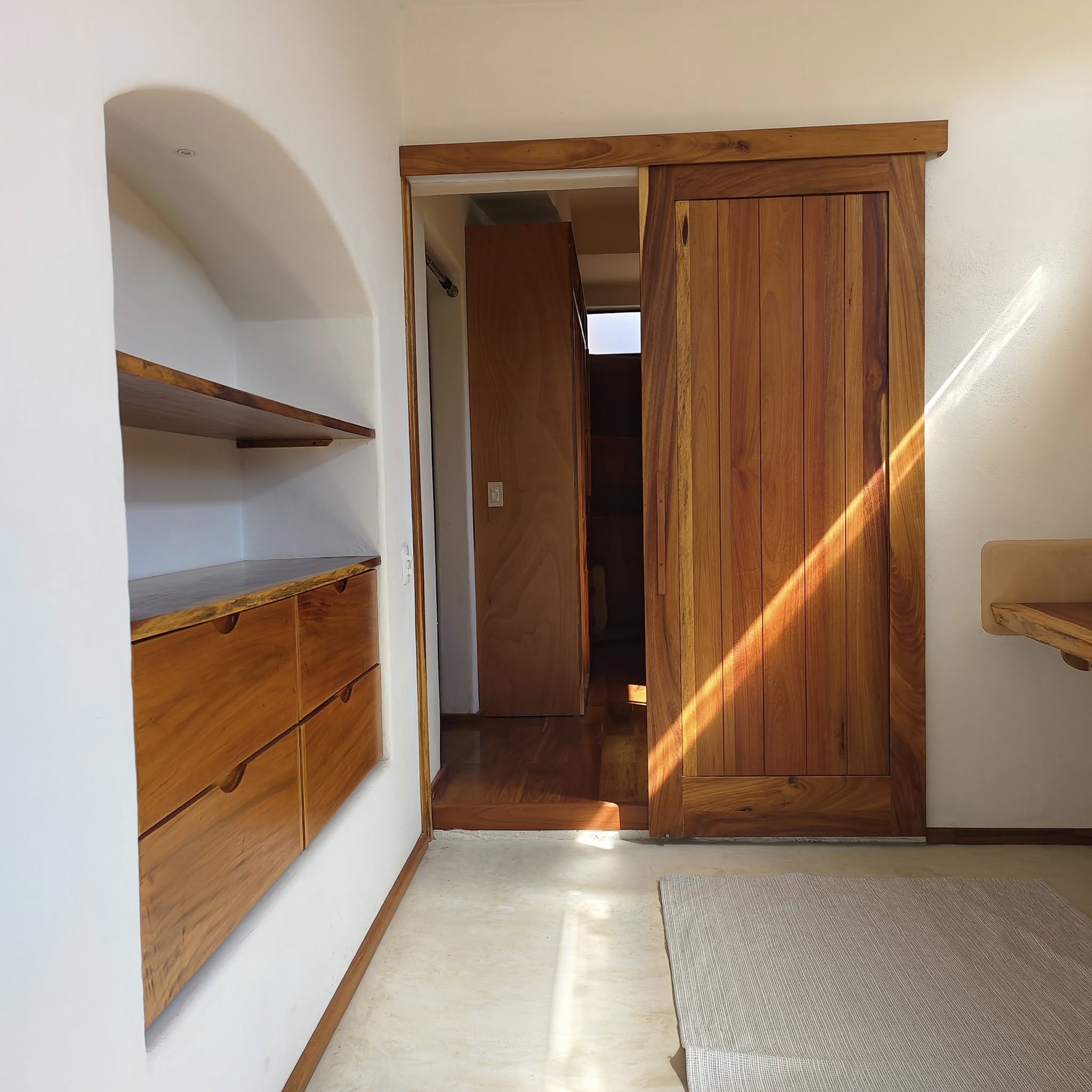 Casa principal con 3 amplías recámaras cada una con baño completo y vestidor, 1 estudio con cama Queen abatible, cocina equipada con isla de piedra de granito, comedor con mesa para 10 a 12 personas , cuarto de lavado y 3 amplías terrazas (1 en planta baja y 2 en planta alta) con hermosa vista a las montañas de Tepoztlán.