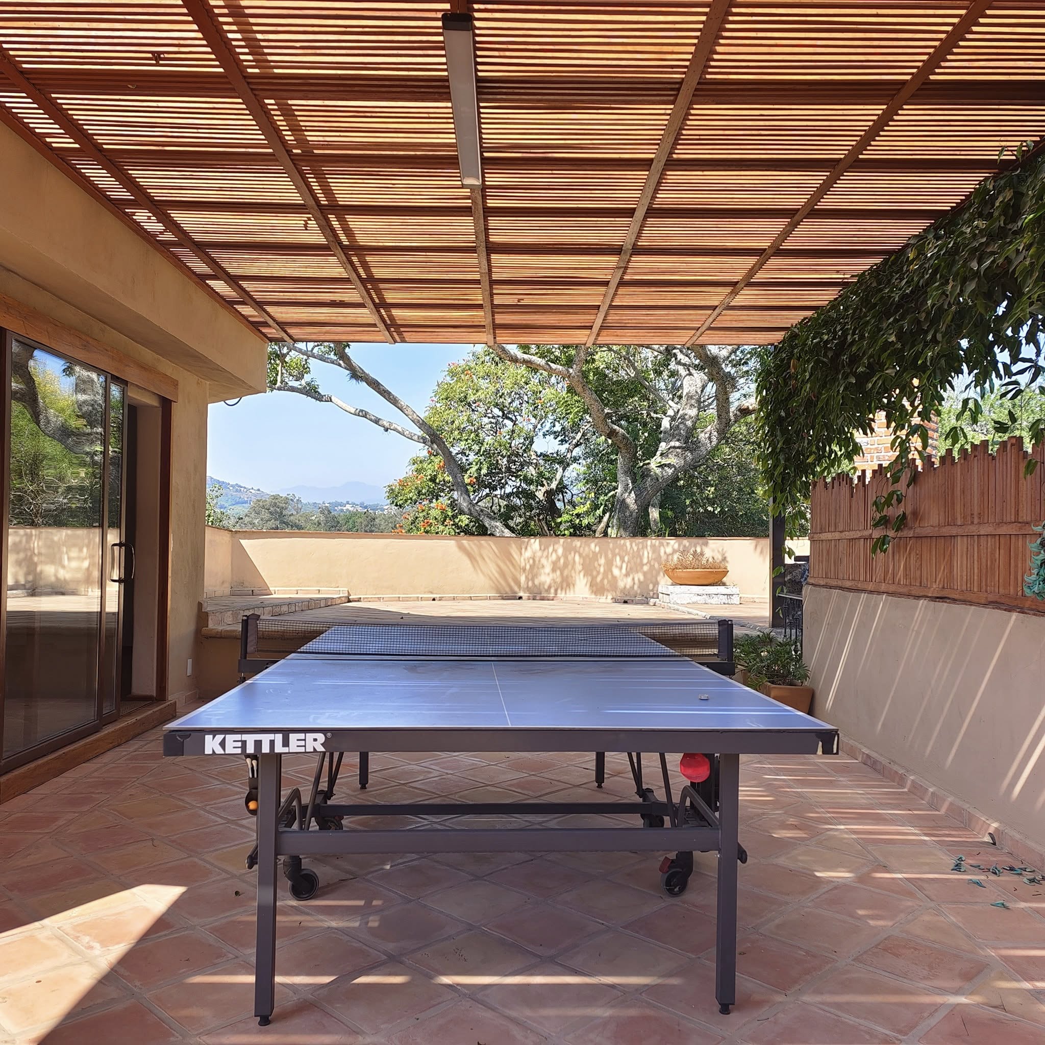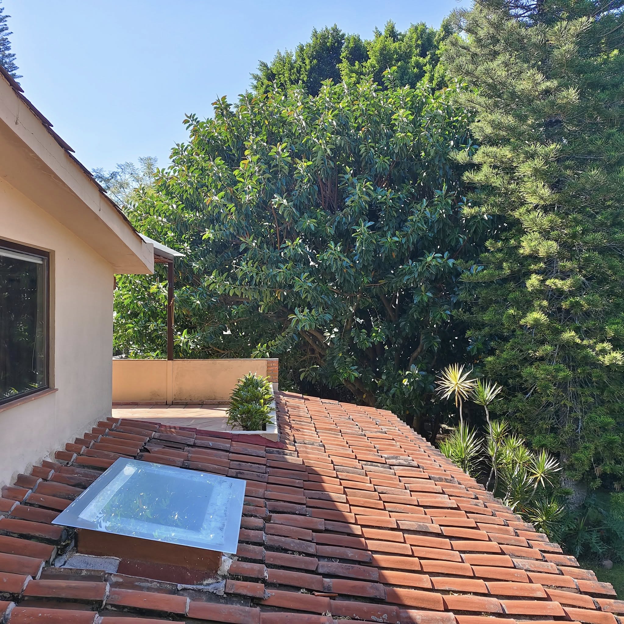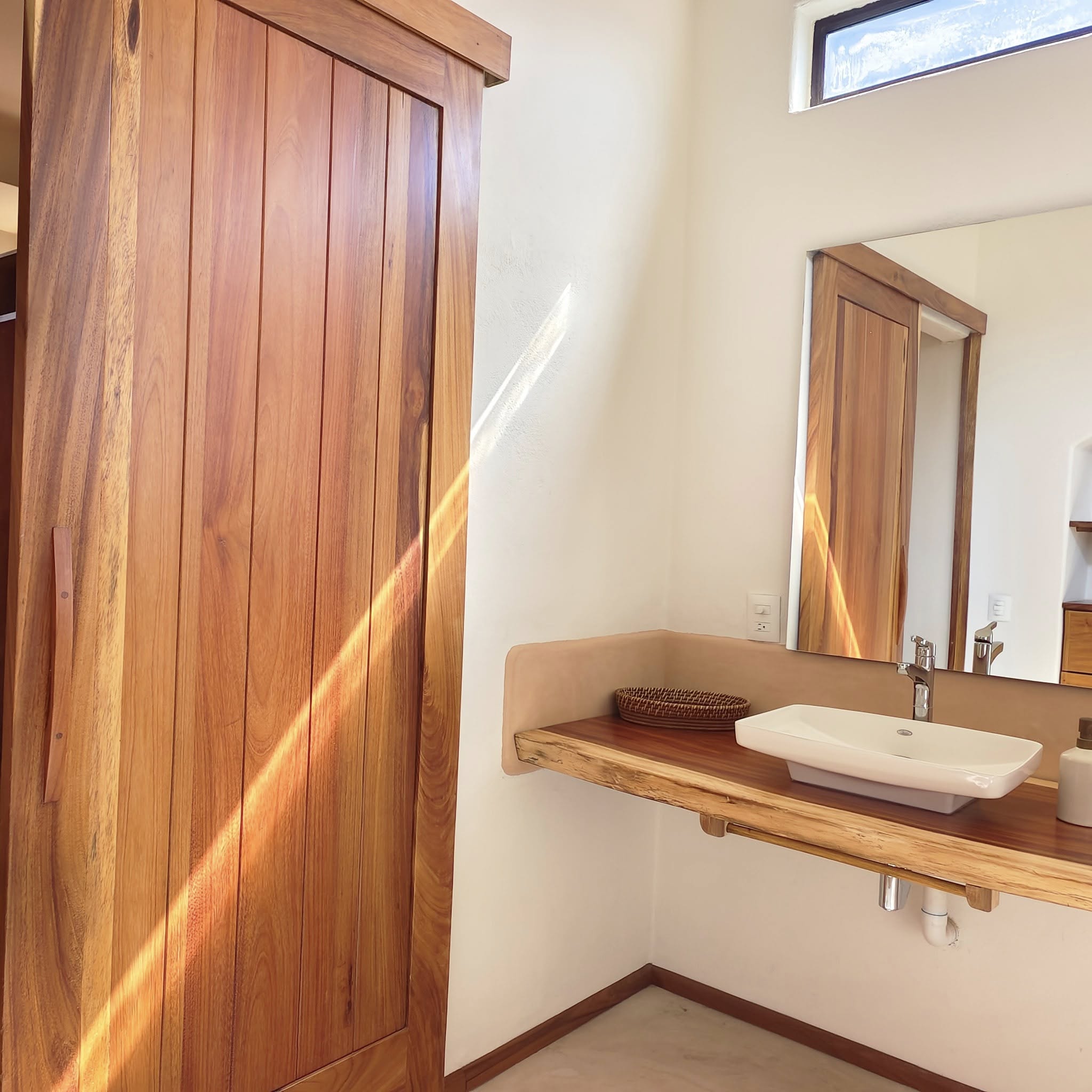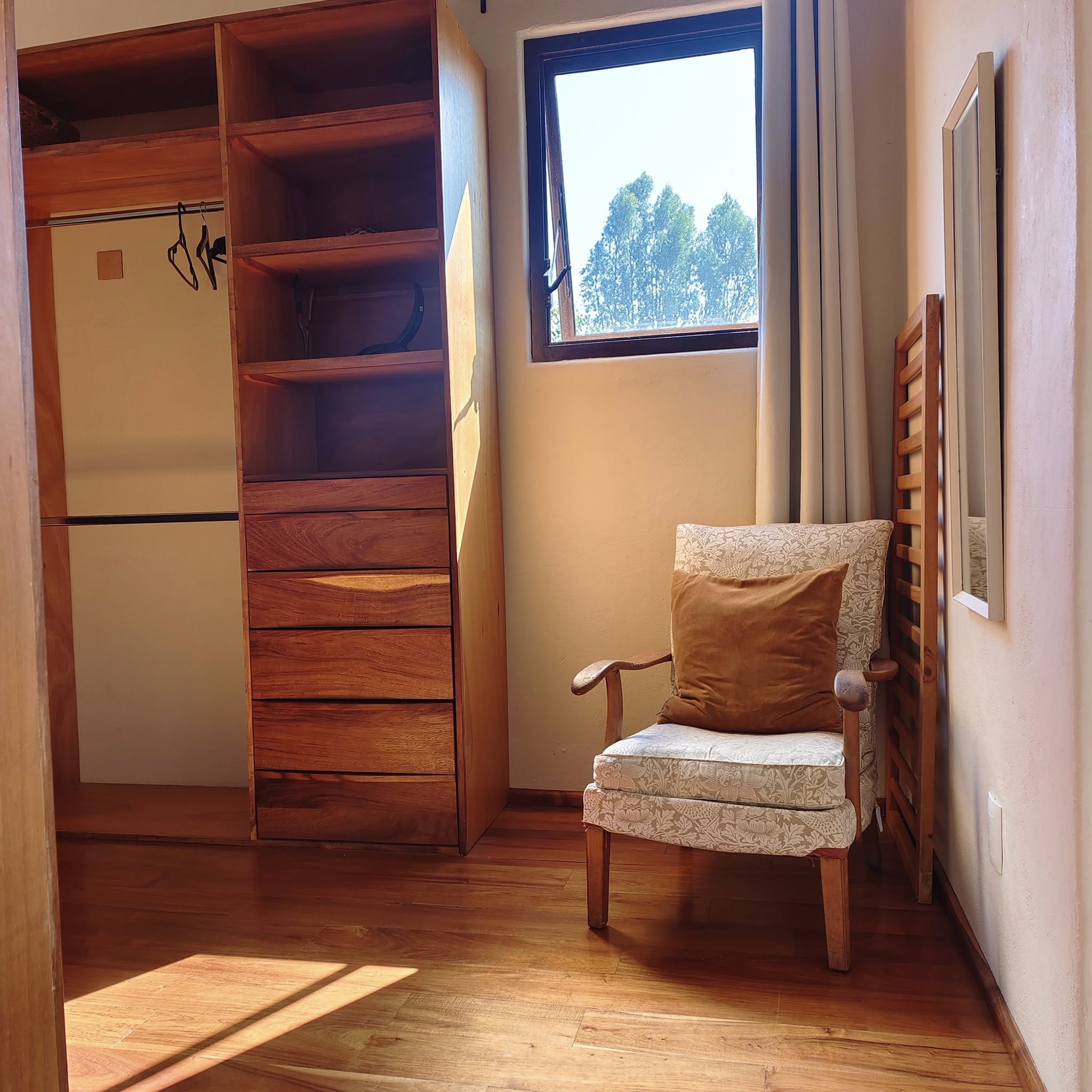 Casa principal con 3 amplías recámaras cada una con baño completo y vestidor, 1 estudio con cama Queen abatible, cocina equipada con isla de piedra de granito, comedor con mesa para 10 a 12 personas , cuarto de lavado y 3 amplías terrazas (1 en planta baja y 2 en planta alta) con hermosa vista a las montañas de Tepoztlán.