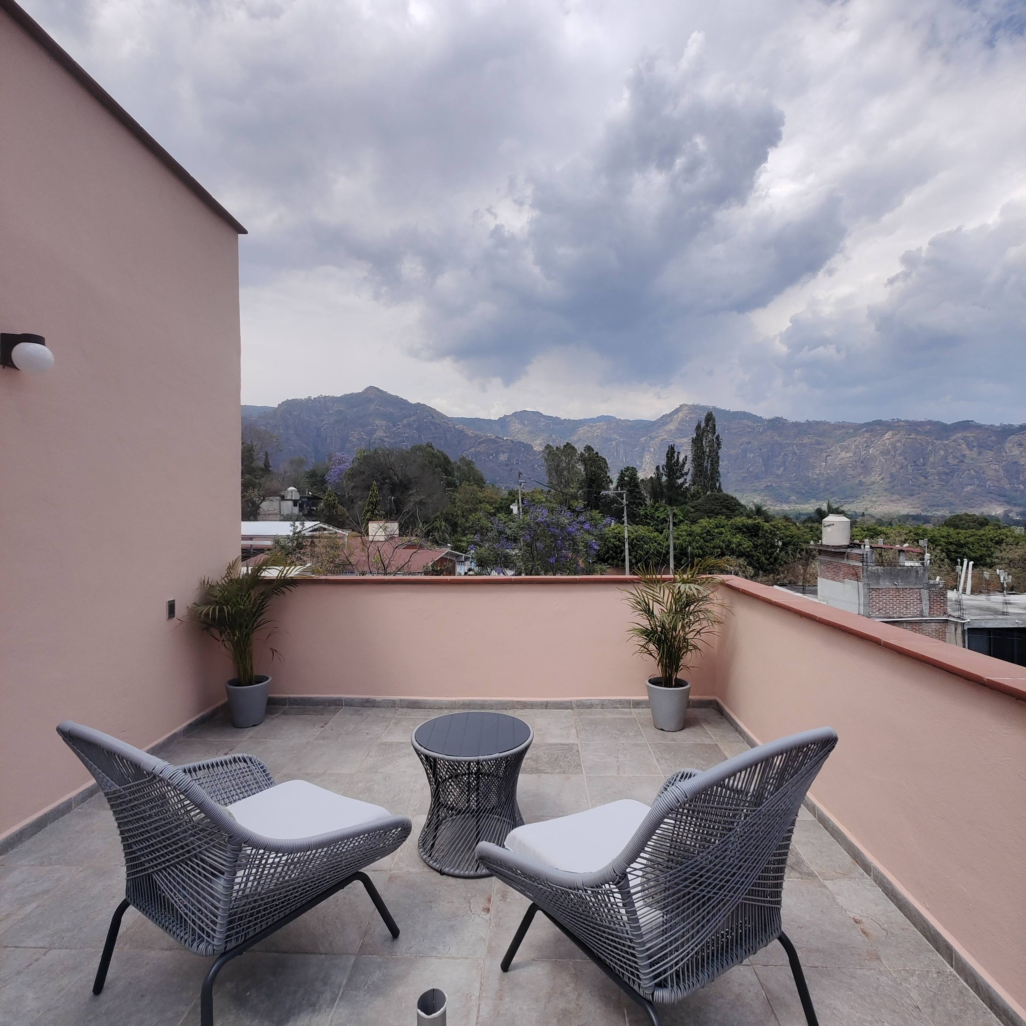 Ubicada el Barrio de San José a solo 8 minutos del centro de Tepoztlán con vista panorámica.