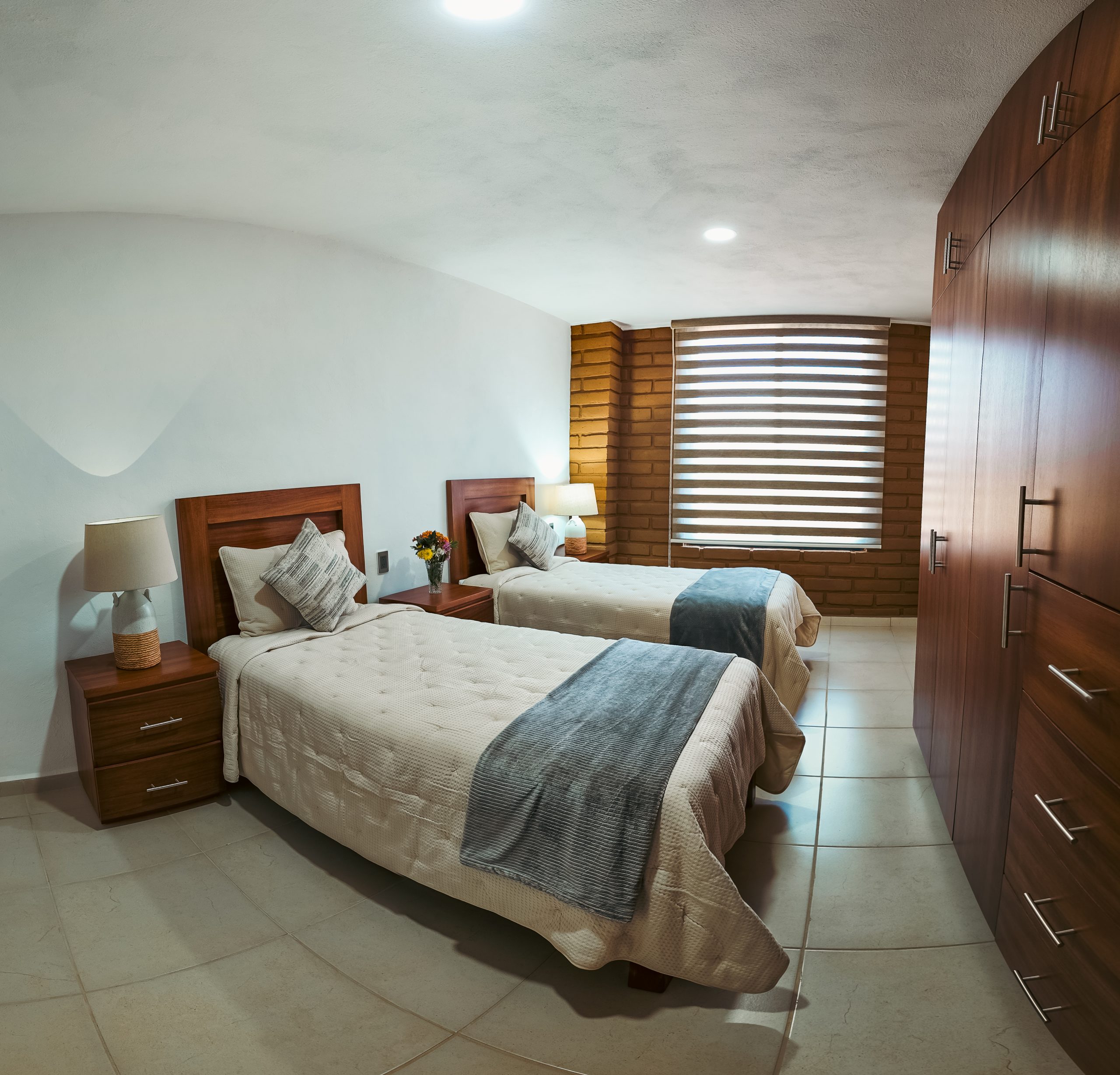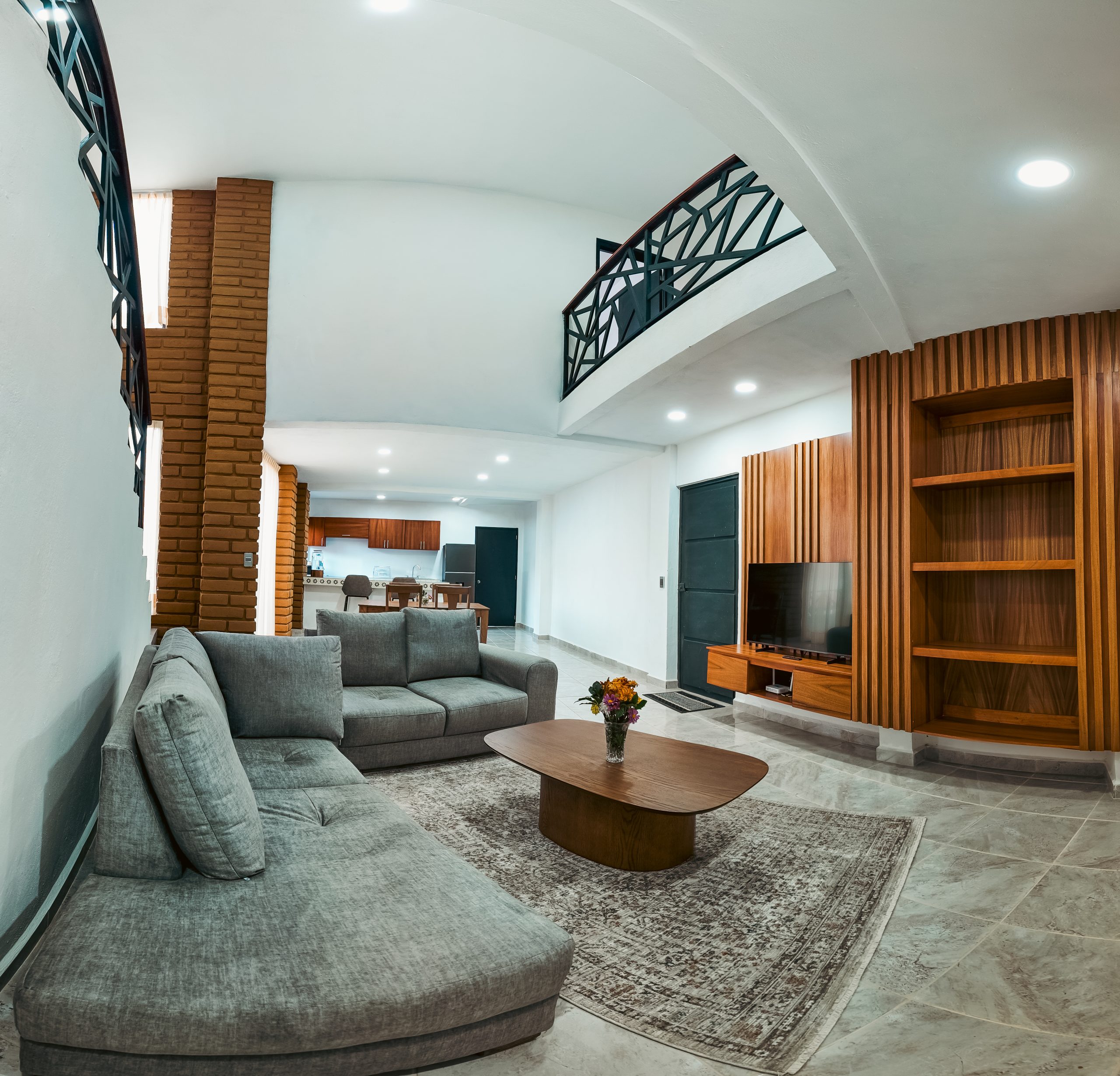 Excelente iluminación natural y una sensación de amplitud, algunos muros de adobe. Ventanas son mosquiteros, cortinas y persianas.