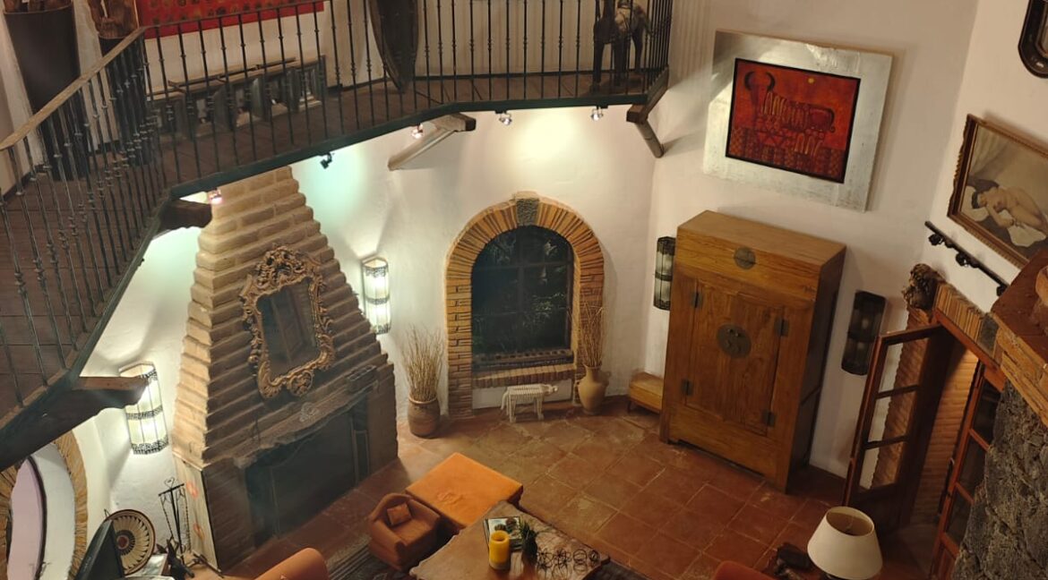 Cocina, sala de doble altura con bóveda ,TV con SKY , chimenea, comedor para 8 personas.