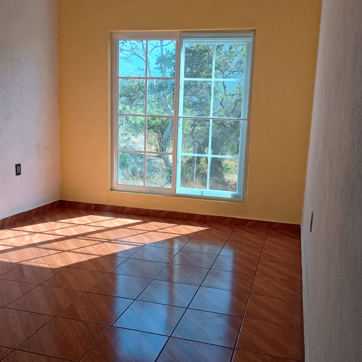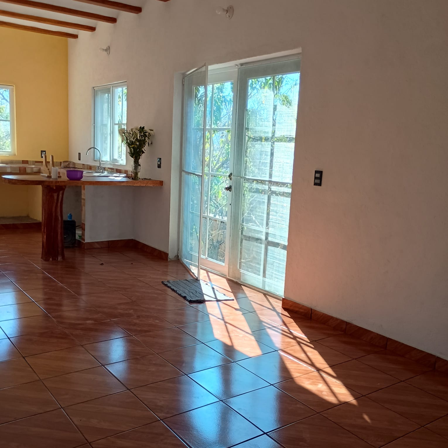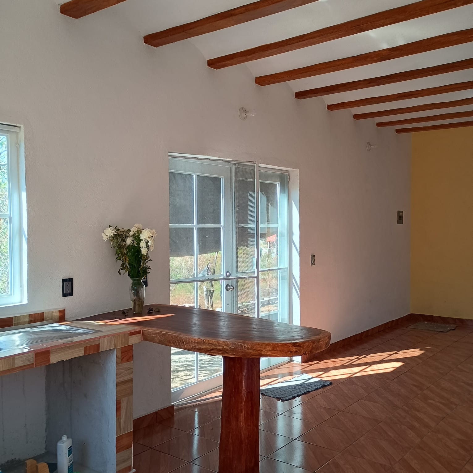 2 recámaras,1 baño con calentador solar, sala, comedor, cocina con estufa y barra de madera.