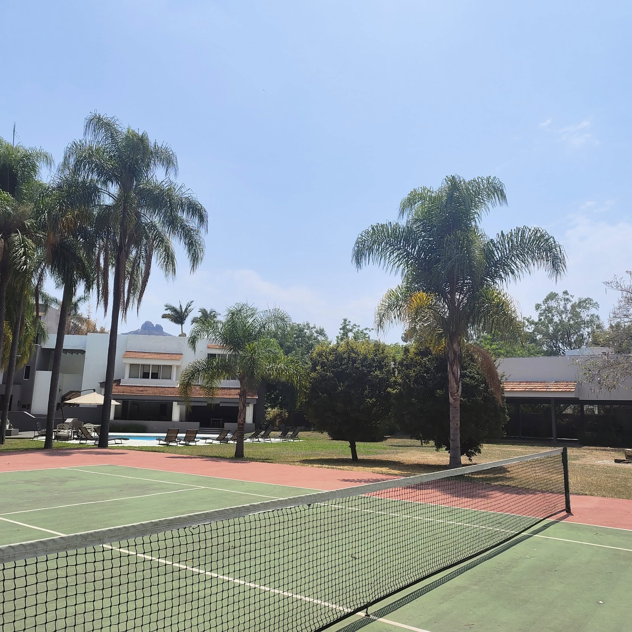 La casa cuenta con 16 hermosas recámaras cada una con baño completo, cocina amplía con desayunador, sala con chimenea, comedor, salón de juegos de usos múltiples, bar con pantalla plana, 2 salitas de tv, 2 baños de visitas, alberca pequeña, jacuzzi con sistema solar, temazcal y cancha de tenis. Estacionamiento para 12 autos y jardín plano.