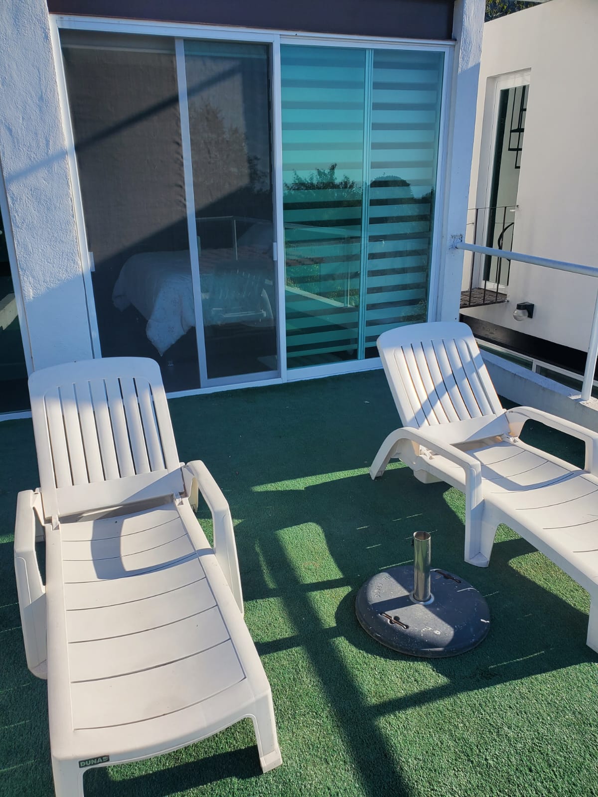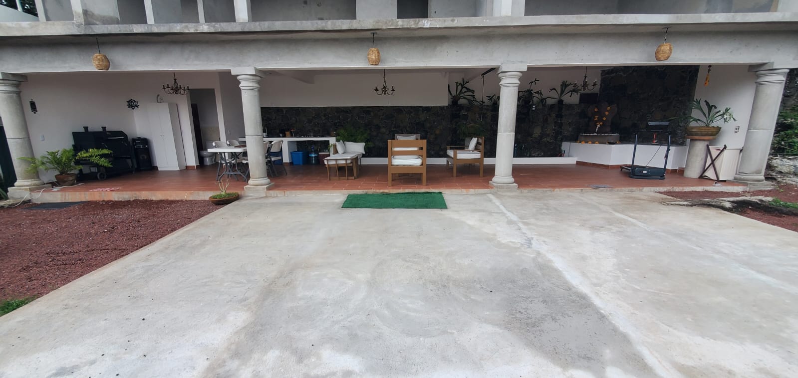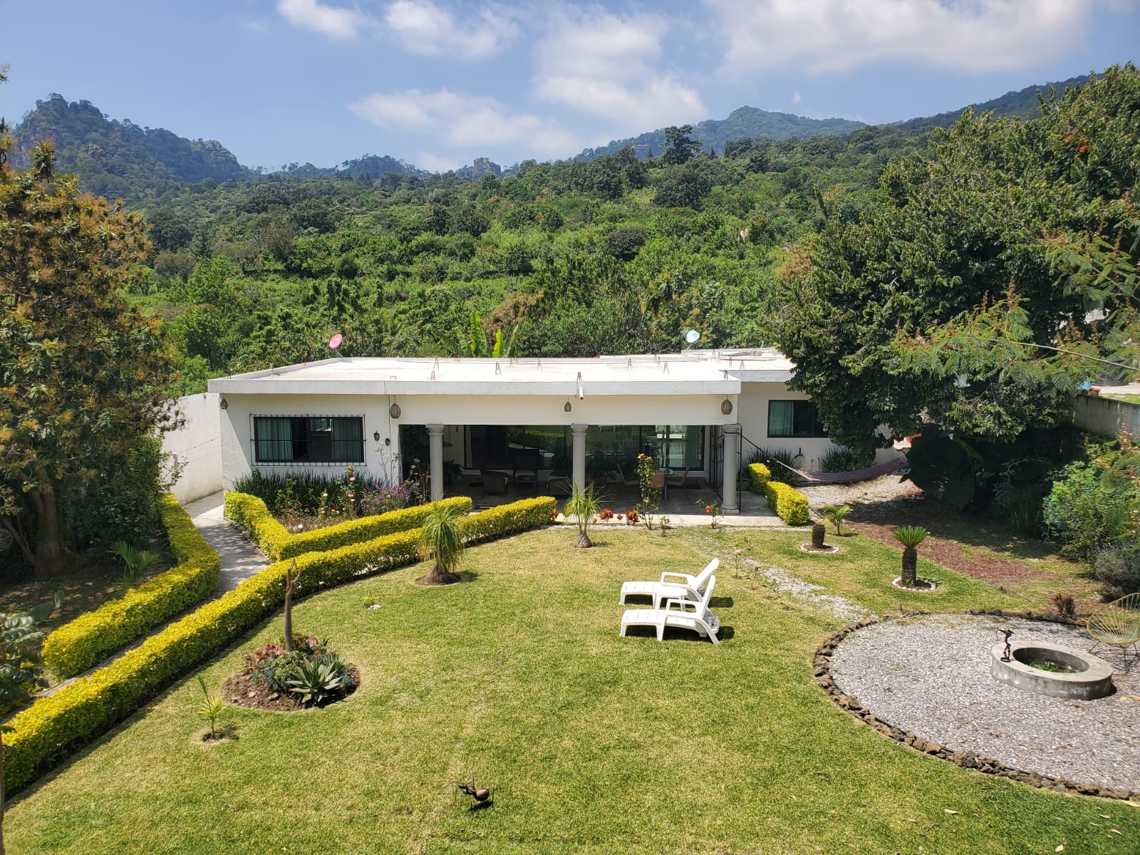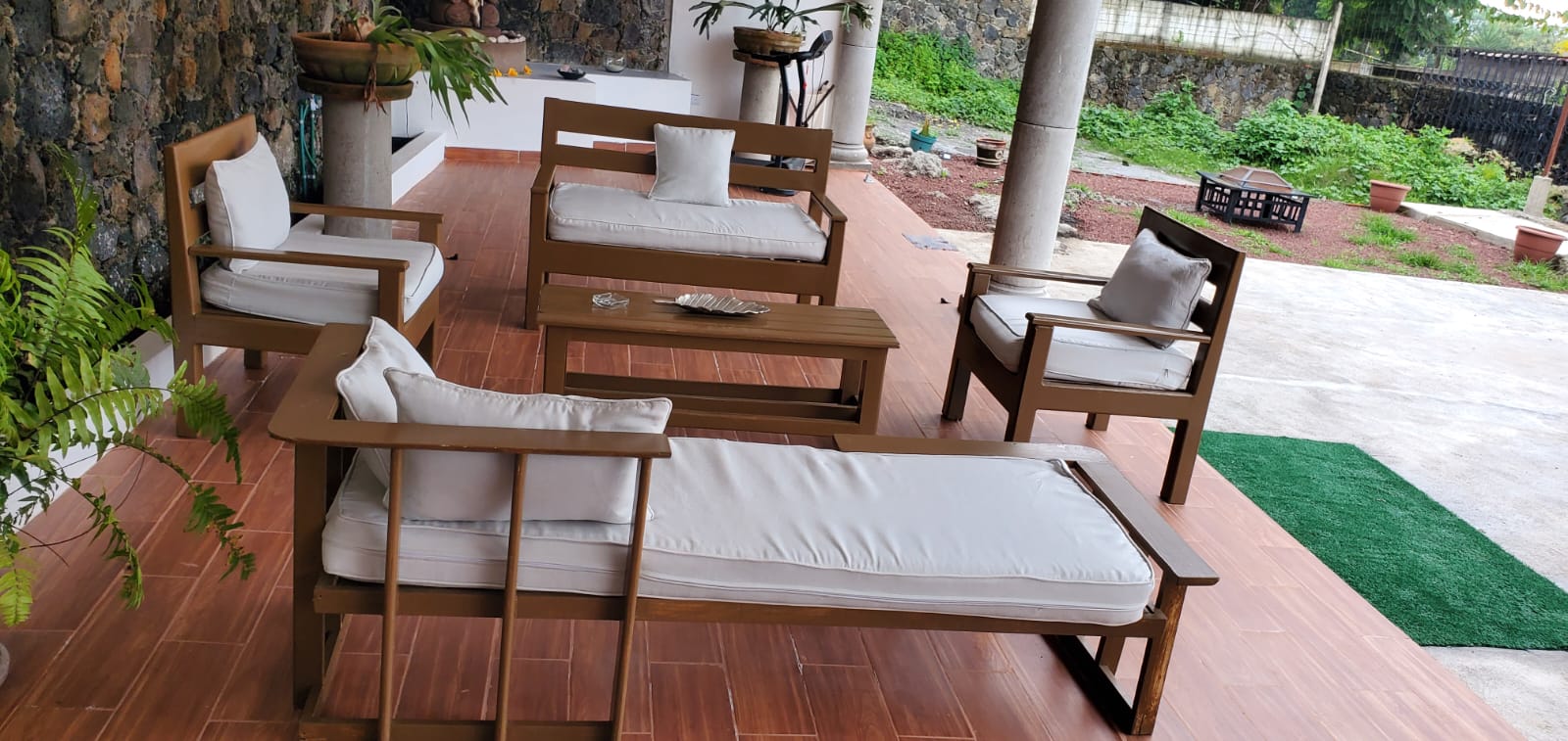 1er área común: Jardín, camastros, fogatero, asador, hamaca.