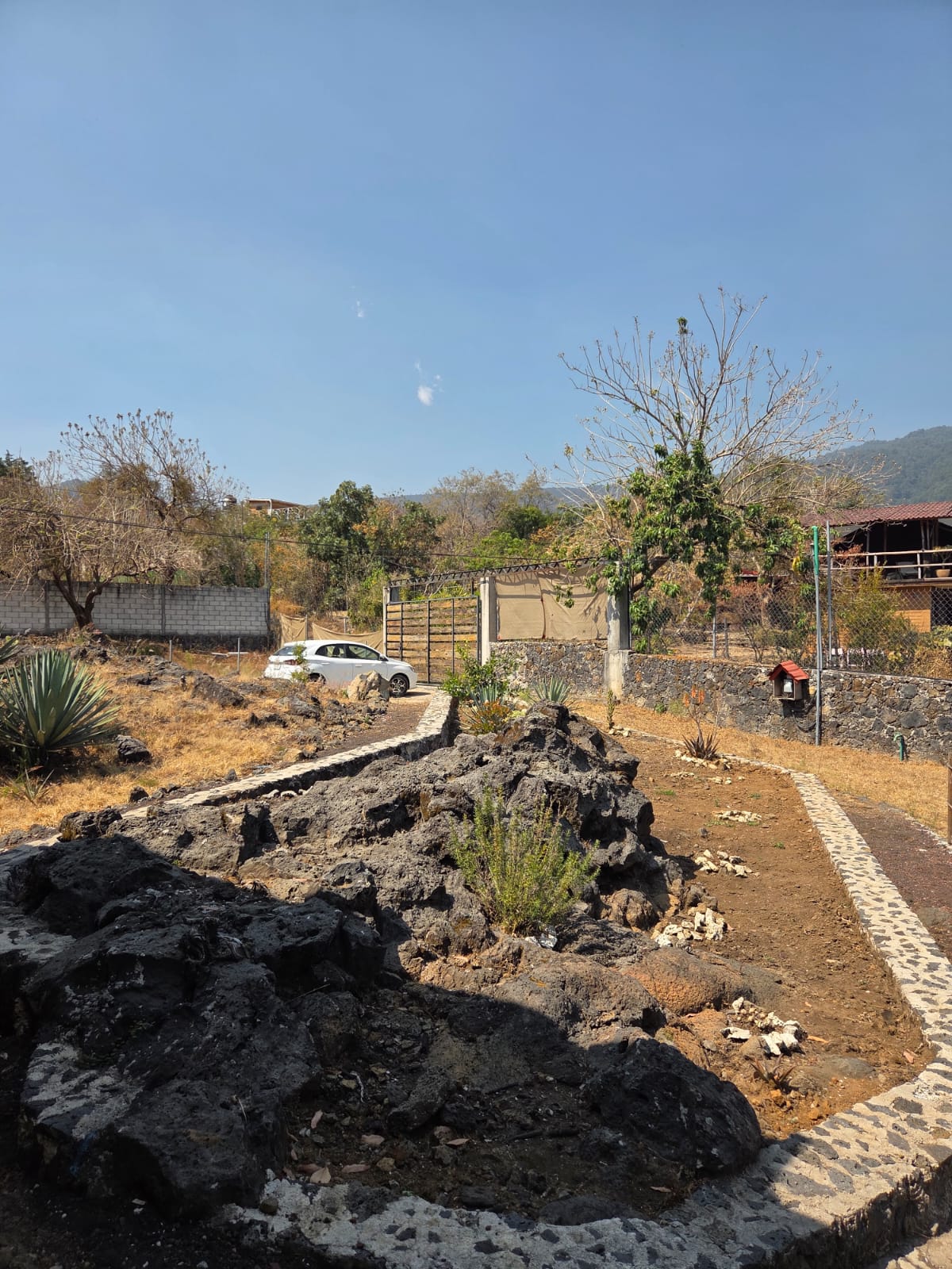 En un terreno de 1800 m2 con vista panorámica a las montañas.
