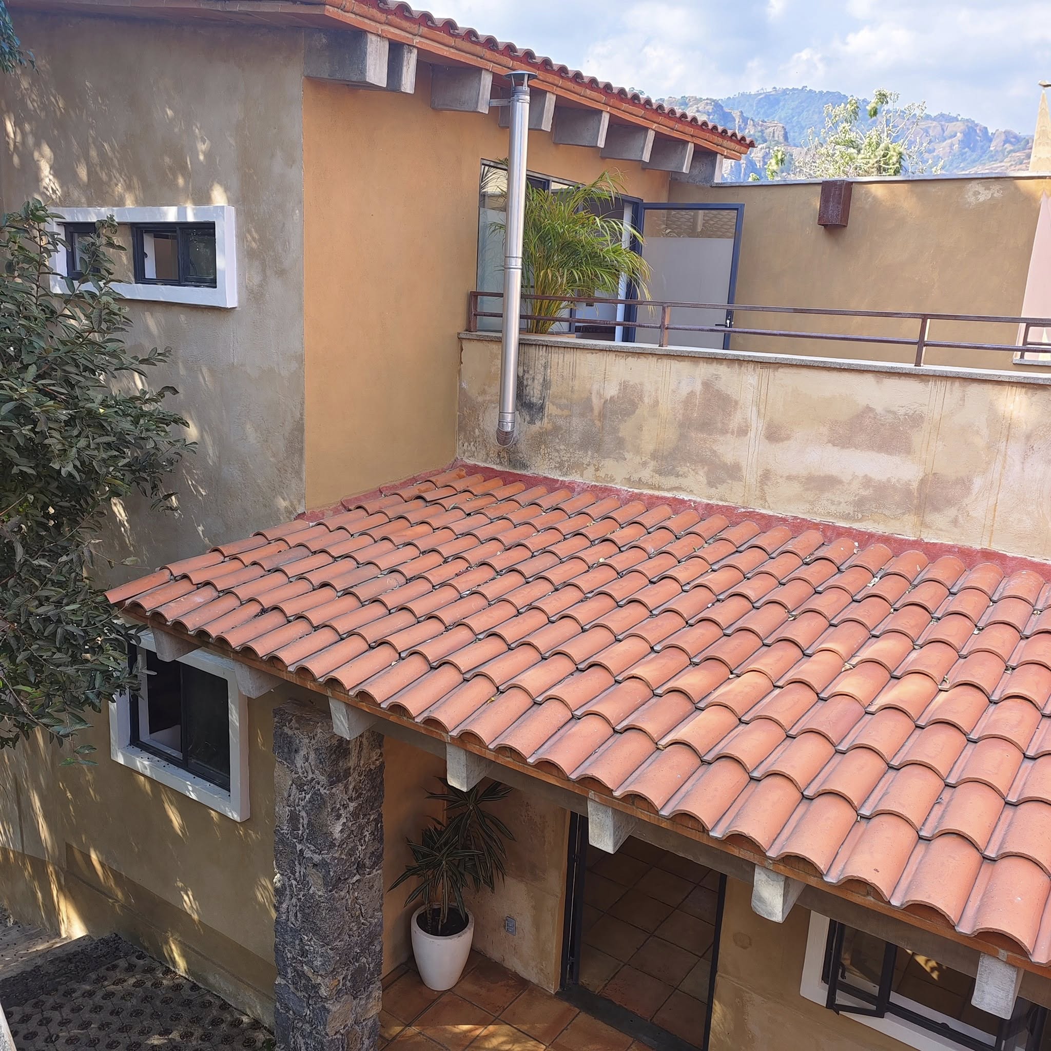Dentro de un conjunto con 3 casas más, ubicada en Moxoquila a 15 min del centro de Tepoztlán y a 5 min de la nueva entrada de la autopista.