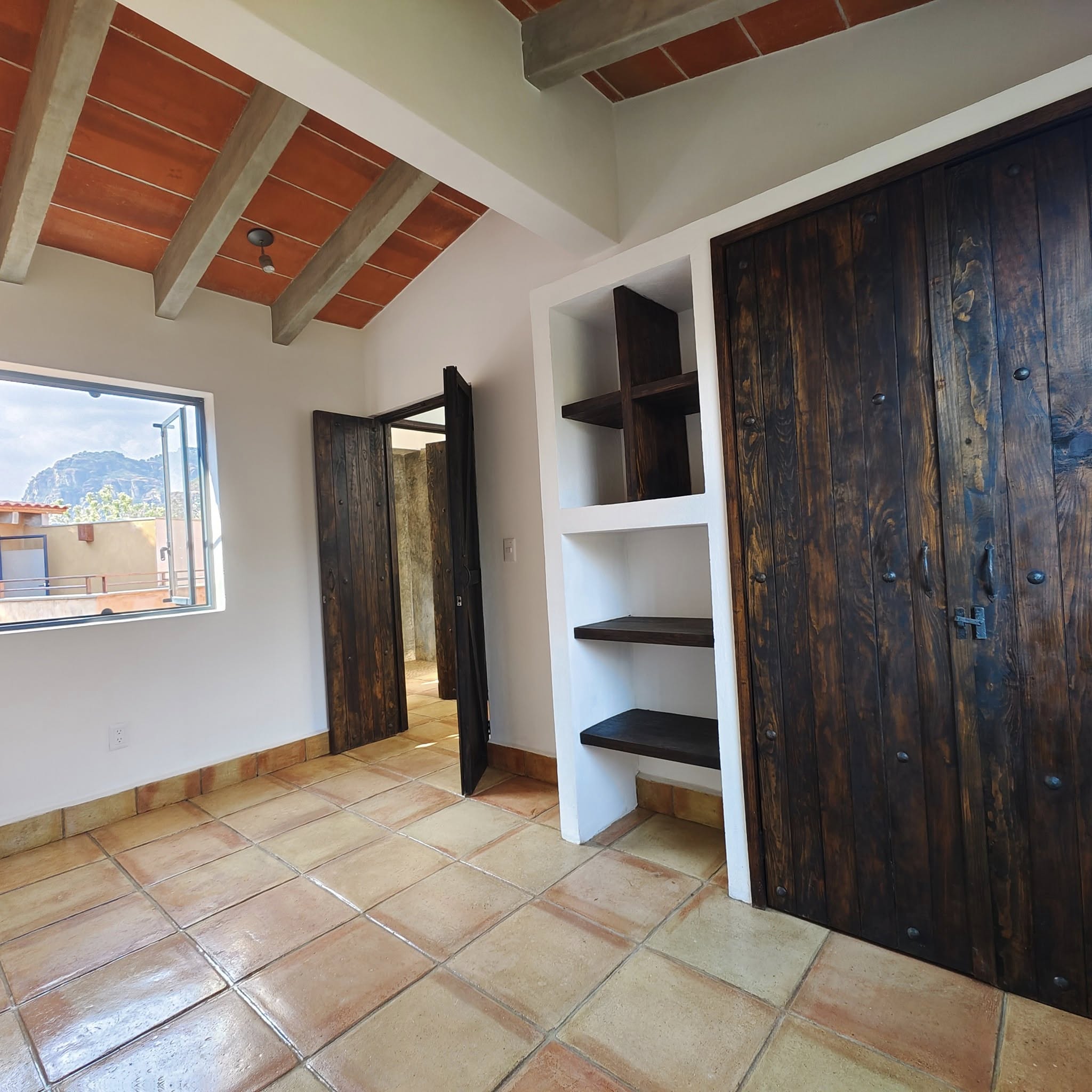 Dentro de un conjunto con 3 casas más, ubicada en Moxoquila a 15 min del centro de Tepoztlán y a 5 min de la nueva entrada de la autopista.