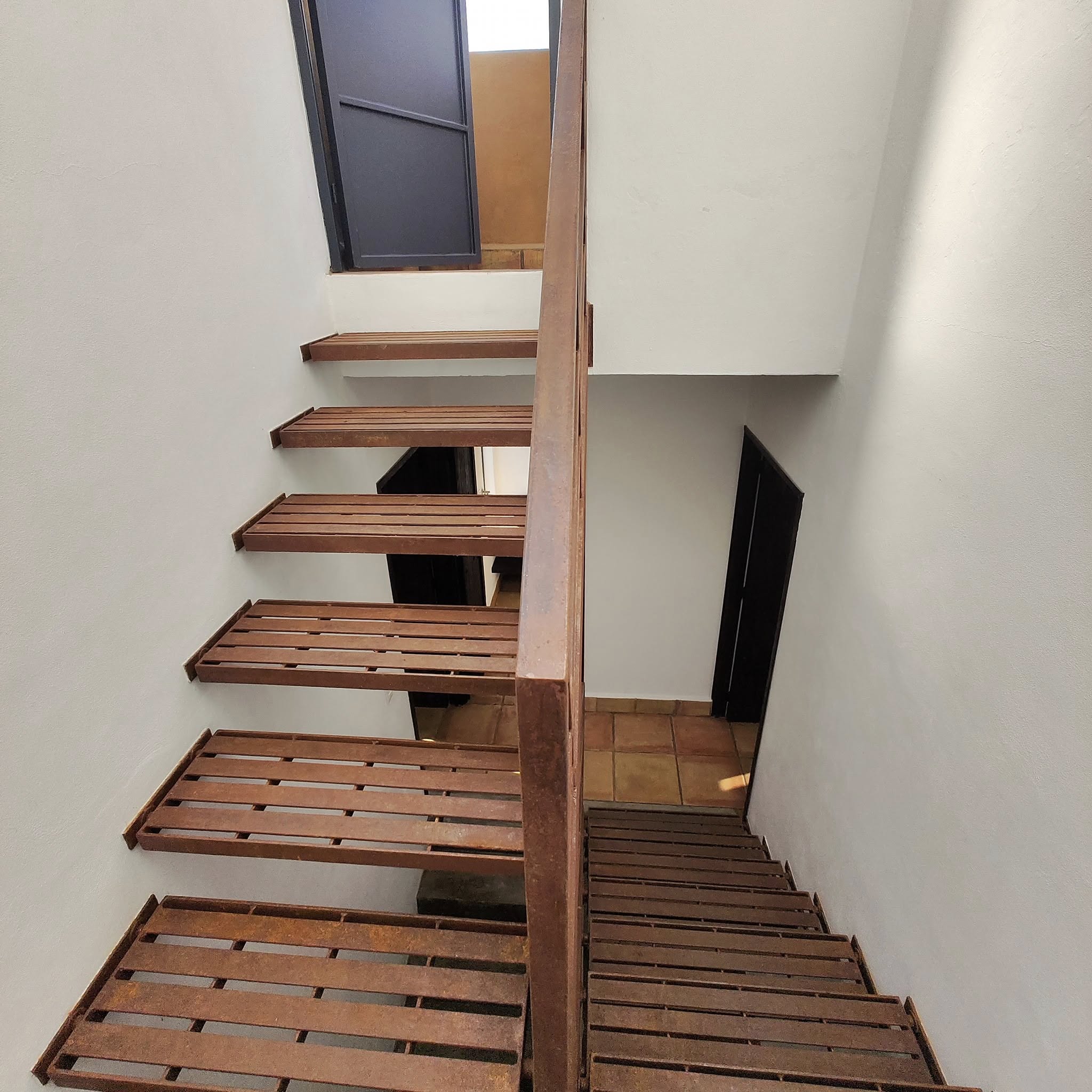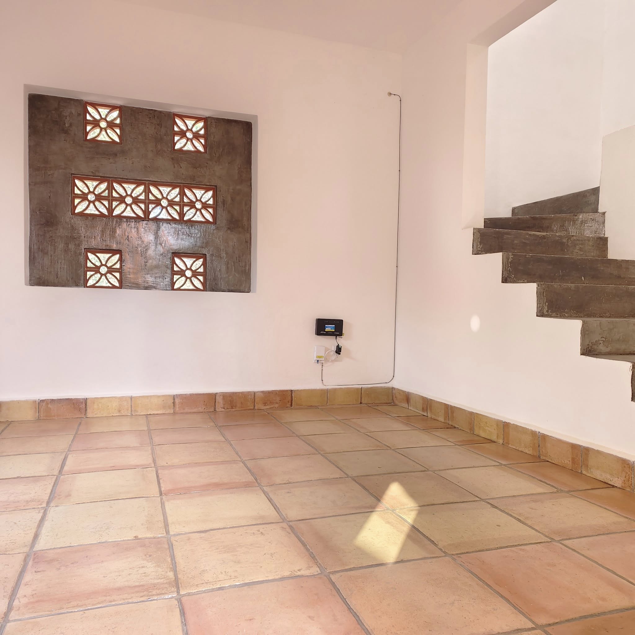 De 2 planas, 2 recámaras con clóset , 1 baño , sala ,comedor, cocina. Terraza con vista a las montañas.