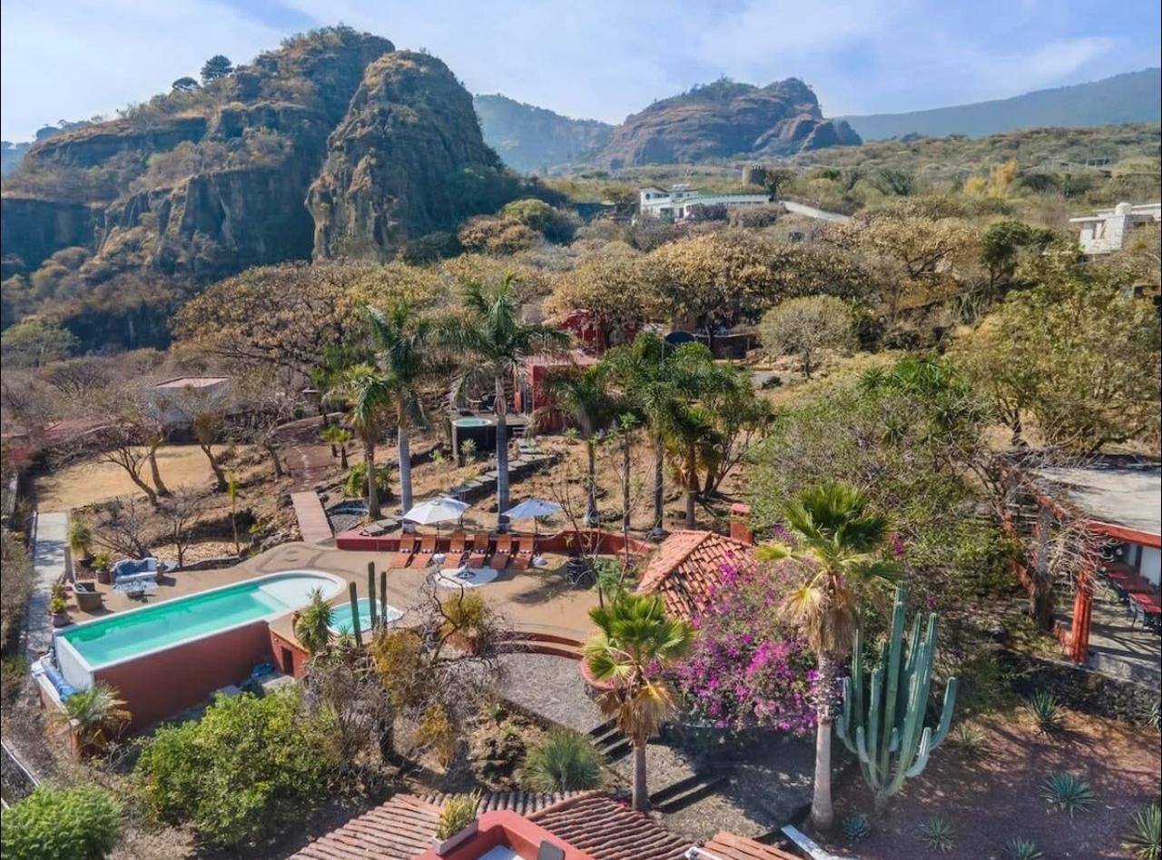 4,800 m2 de terreno y 800 m2 de construcción, totalmente bardeada, ubicada rumbo a Santo Domingo Ocotlitlán con una de las mejores vistas de Tepoztlán ya que se disfruta tanto de día los cerros del Cematzin, el Otlayo, las montañas del Valle de Atongo y de noche las luces del pueblo de Tepoztlán y de Yautepec.